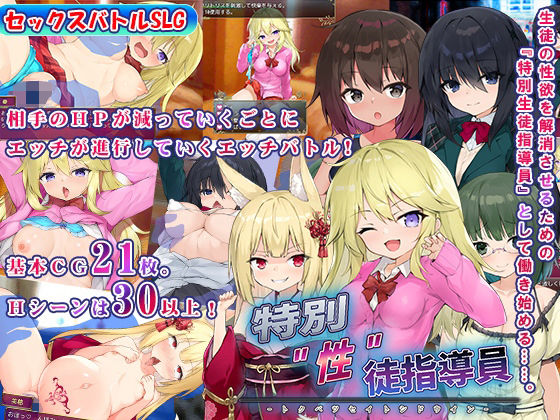 某有名女学院に雇われたあなたは、生徒の性欲を解消させるための『特別生徒指導員』として働き始める……。 ▼ 概要 基本CG21枚。Hシーンは30以上! 女学院に通う女生徒たちの性への好奇心を満足させる『特別生徒指導員』として、生徒とエッチをしていくゲームです。 性欲を持て余した若く瑞々しい肉体とのエッチは戦闘に等しいです。 学院内を散策して能力を上げ…